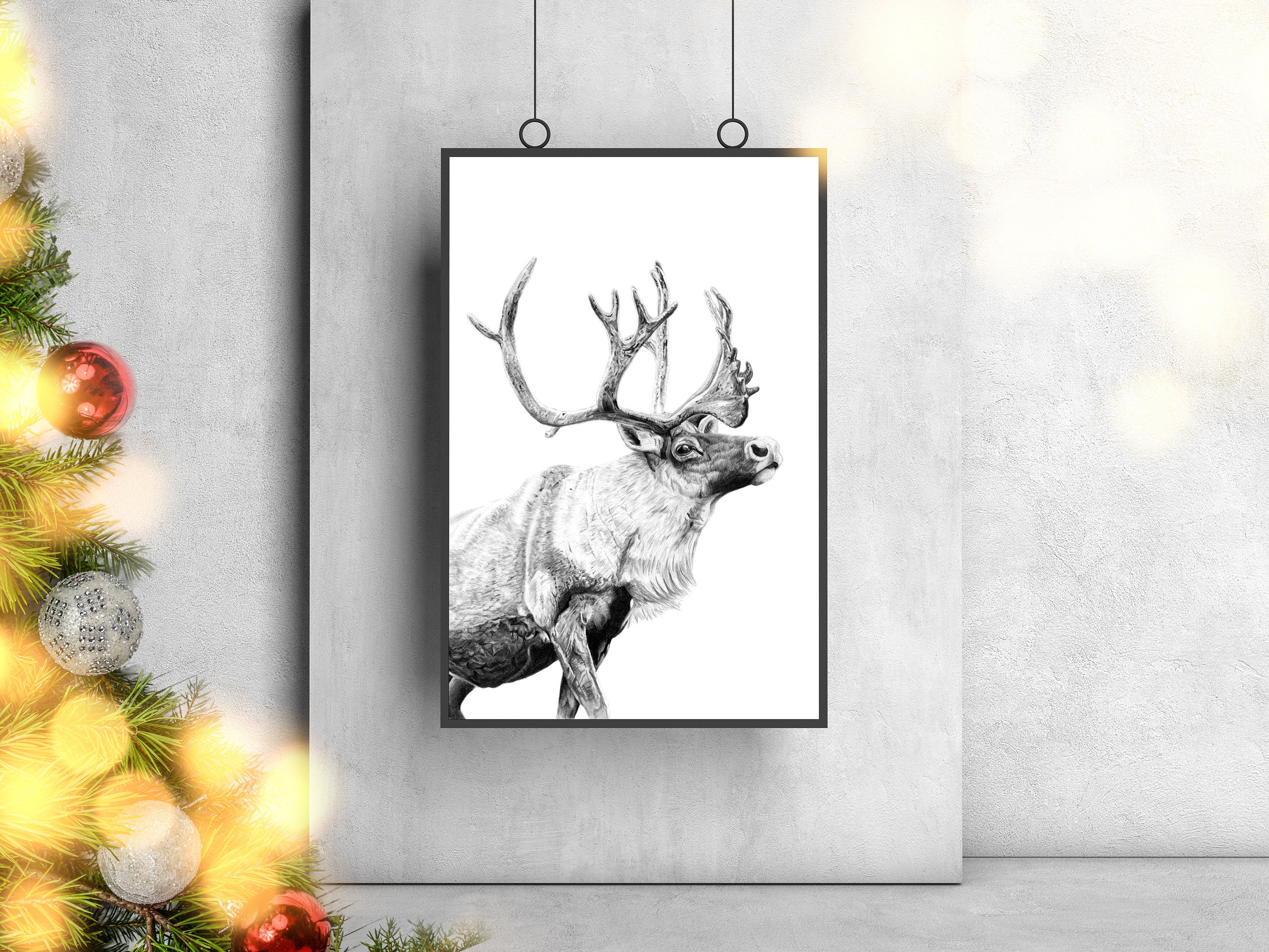 Reindeer Art Print Caribou Print Graphite Drawing Giclee Etsy Denmark
