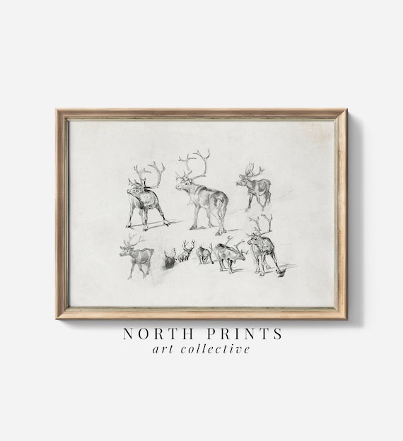 Vintage Christmas Reindeer Sketch Art Winter Farmhouse Etsy Ireland